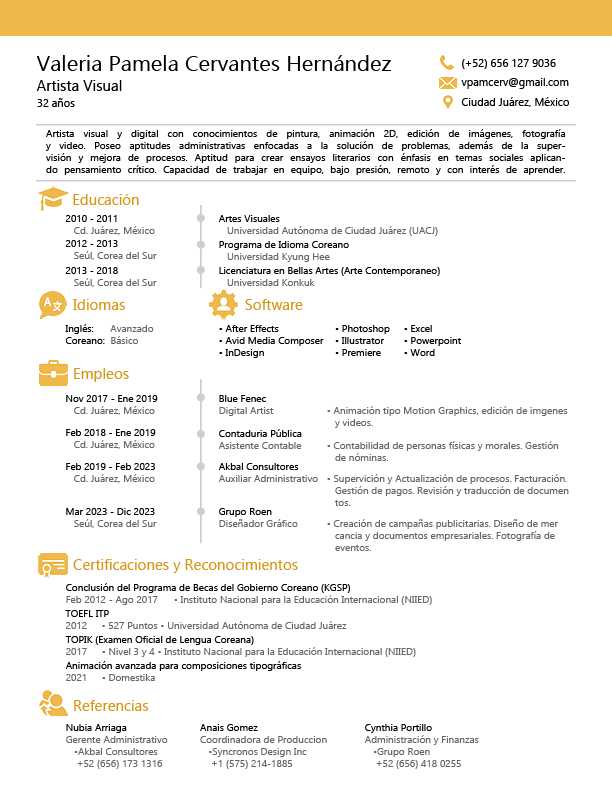 Visual and digital artist skilled in drawing, illustration, image manipulation, photography, sound design, and video editing. Proficient in administrative tasks with a focus on problem-solving. Experienced in crafting literary essays addressing social issues with critical thinking. Adaptable and resilient, I am capable of working in high-pressure environments, both independently and within remote teams. I maintain a proactive approach to learning and skill development, consistently seeking opportunities for growth and innovation.